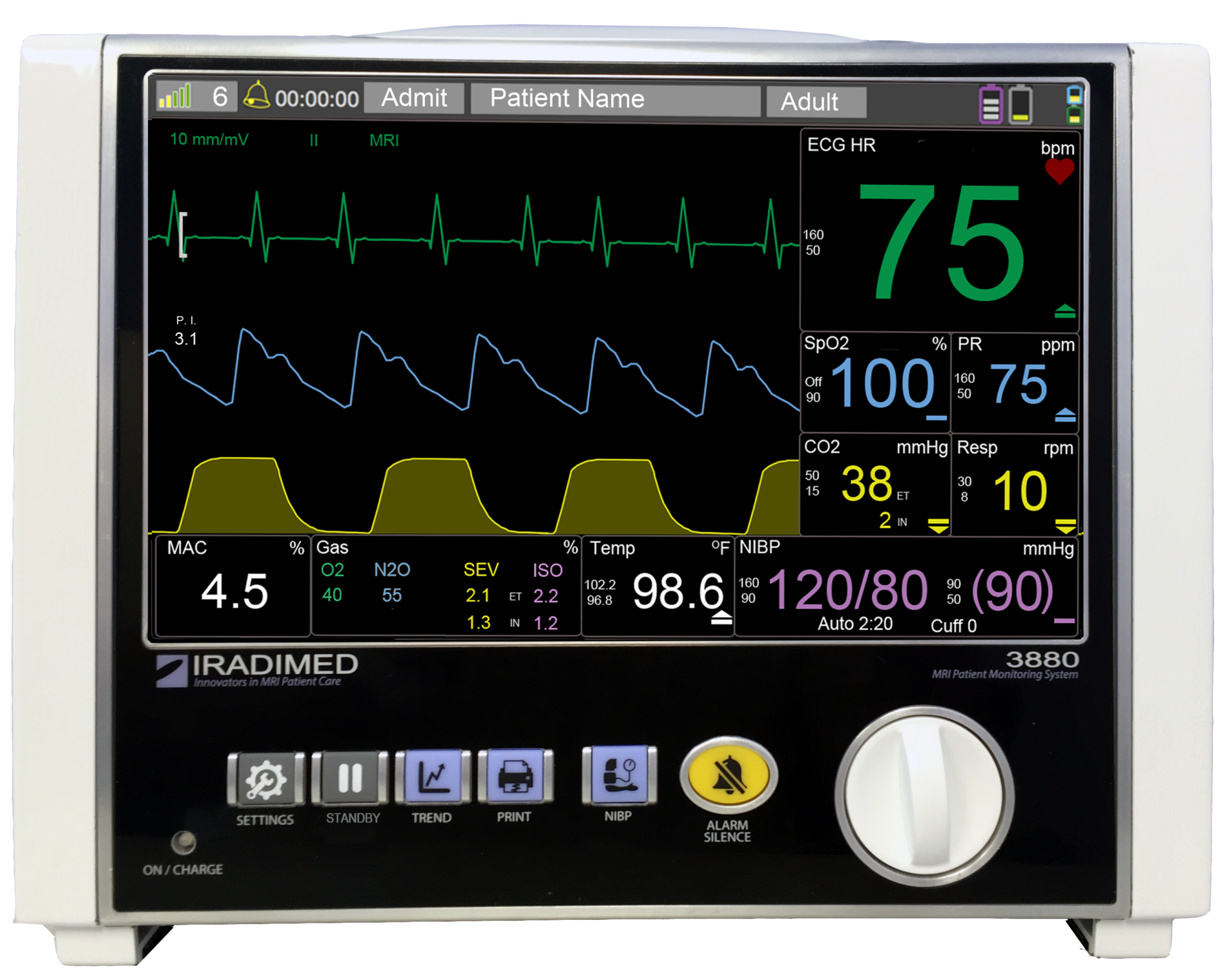 IRadimed 3880 je transportní monitorovací systém, který je určený k monitoraci životních funkcí pacientů, kteří podstupují vyšetření magnetickou rezonancí. IRadimed 3880 je prvním zcela nemagnetický systémem, který je kompatibilní s magnetickými rezonancemi do 3 T s magnetickou odolností 30 000 Gauss.